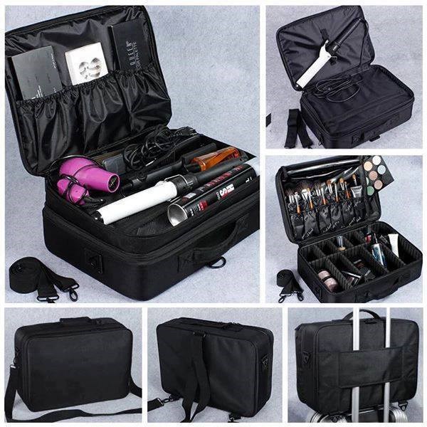 Đây là loại kích thước lớn, hàng chuẩn loại 1 ,chất liệu vải dù dày bền, Thiết kế 3 lớp, Các khay có thể sắp xếp phân chia theo ý mình. Có lớp để cọ riêng, lớp để máy móc thiết bị (như máy uốn xoăn, máy dập xù, máy là ...)